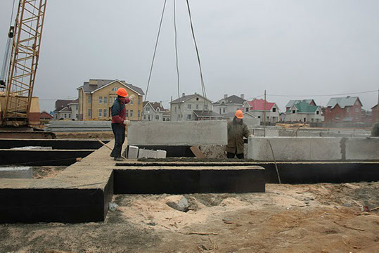 Монтаж фундаментных блоков